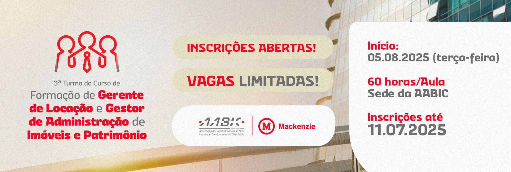 * A AABIC reserva-se o direito de adiar a realização ou de cancelar o curso, caso não seja atingido o quórum mínimo.